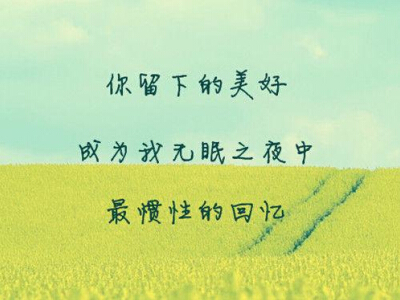 1、Mywarmisnotmuch,allforthosewhogoodforme我的温暖并不多,全都留给那些对我好的人了2、低头弄莲子,莲子清如水(乐府古辞《西湖曲》)3、说实话只有喜欢你才会不顾一切,听你的抱怨,忍受你的脾气,看你的脸色,等你的回复,不然何必呢。4、年少的我们应努力拼搏。5、记得...